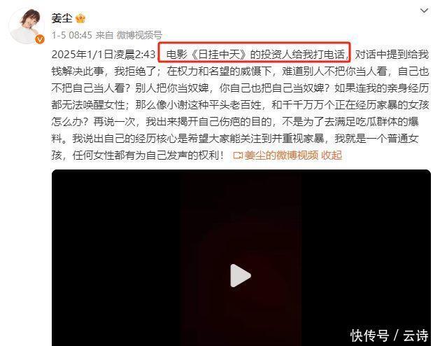 2024年的终末一天,演员姜尘出来爆料。